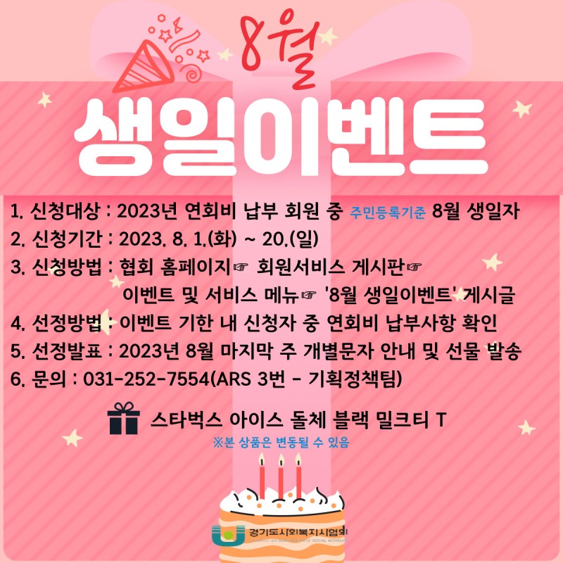 이벤트 및 서비스 [경사협] 2023년 8월 생일축하 이벤트 신청 안내
