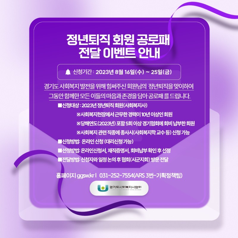 [정년퇴직회원 공로패 이벤트 신청안내]