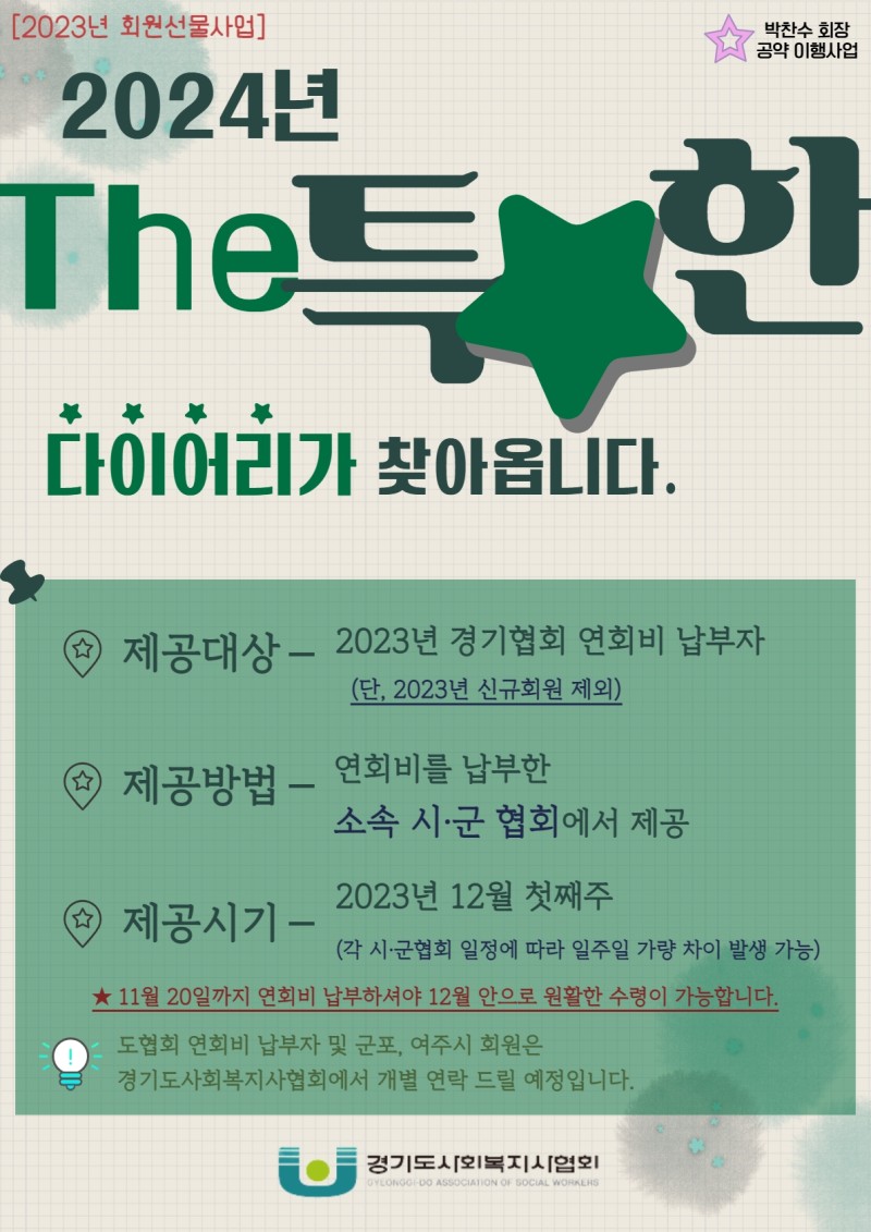 경기도사회복지사협회에서 드리는 더 특별한 다이어리 제공 안내입니다.