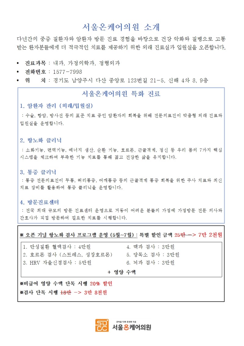2024년 서울온케어의원 의료 서비스 안내