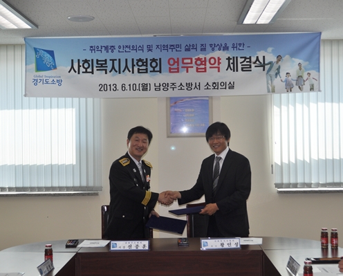 이번 체결식을 통해 남양주소방서는 남양주시사회복지사협회회원과 소속 단체에 「재난예방에 관한 각종 교육 · 훈련과 기타 행사협조 및 각종사회봉사활동에 적극 참여」해 줄 것을 상호 협력하였습니다.