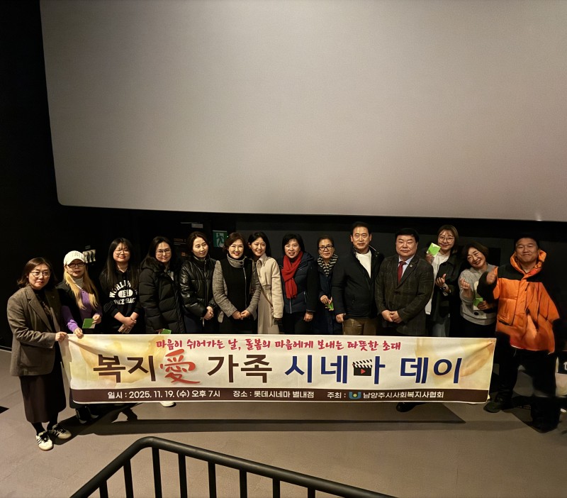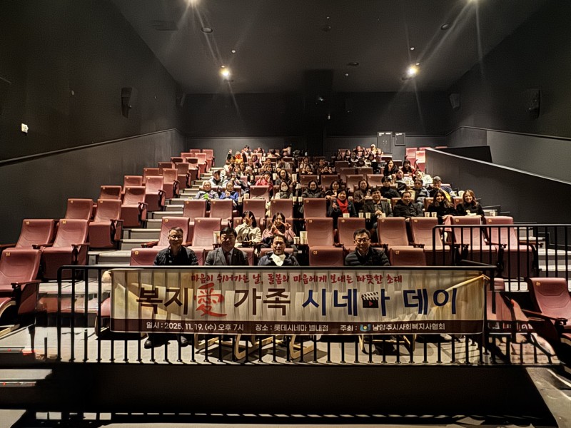 11월 19일, 오후 7시 롯데시네마 별내점에서 남양주시 사회복지사협회 및 가족 80여명이 참석한 가운데, '마음의 온도, 영화로 채우다' 라는 주제로 '나우유씨미3' 영화 관람 행사를 성황리에 마쳤습니다
